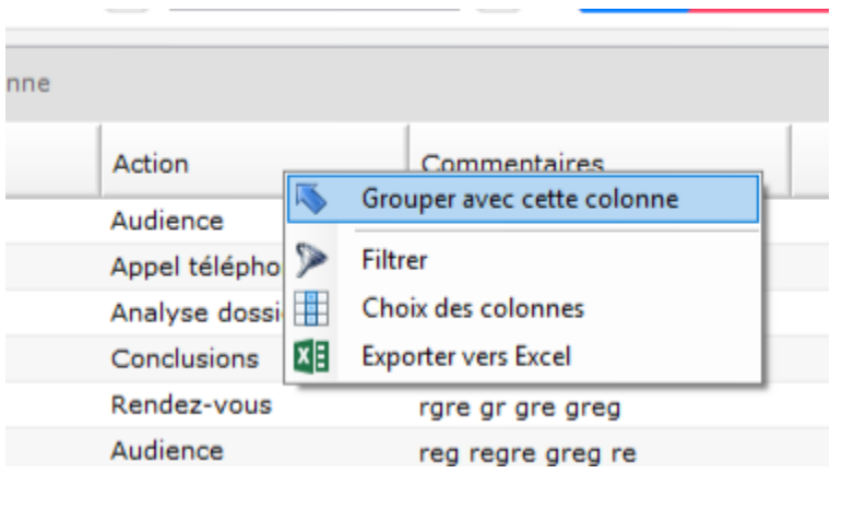 Pour cela, faites un clic droit de la souris sur la colonne par rapport à laquelle vous souhaitez une analyse. Si vous souhaitez par exemple savoir sur quels types d’actions se répartissent vos temps, faites un clic droit sur le titre de la colonne « Action », et choisissez dans le menu la commande