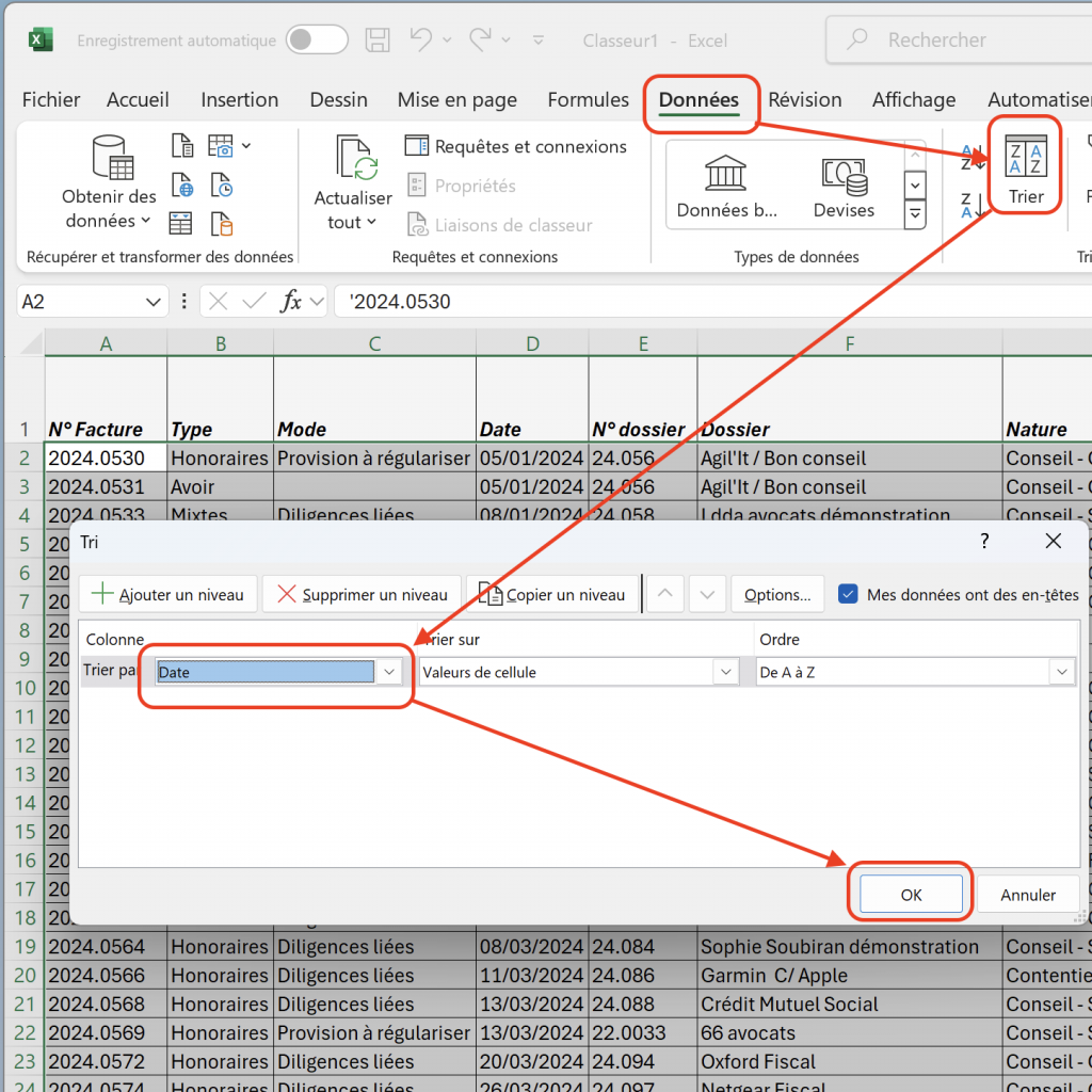 Cliquez ensuite sur le menu “Données”, puis cliquez sur “Trier”.