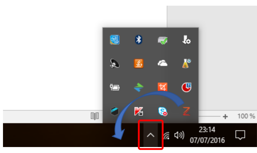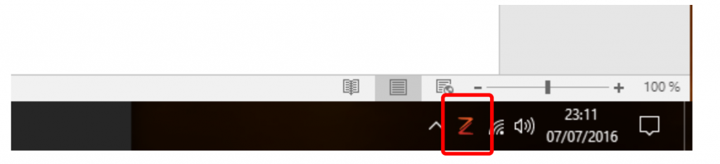 Si l’icône « Z » n’apparait pas dans la barre des tâches, elle se trouve dans les icônes masquées. Cliquez alors sur la flèche qui pointe vers le haut de votre zone de notification de Windows (en bas à droite de votre écran) pour faire apparaitre les icônes masquées et faites glisser l’icône zLawyer « Z » dans la barre des tâches afin qu’elle s’y retrouve.