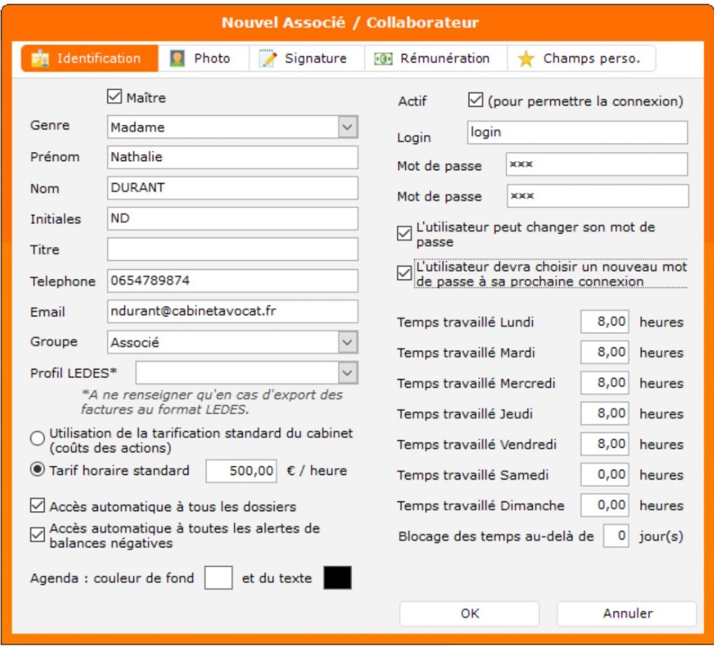 > Le temps travaillé par jour permet de calculer : Ces temps permettent de calculer les temps de saisie et dispo (statistiques disponibles à l’accueil de votre logiciel) “Aujourd’hui” et “Cette semaine” - Onglet Photo : facultatif. Permet d’afficher la photo sur les profils