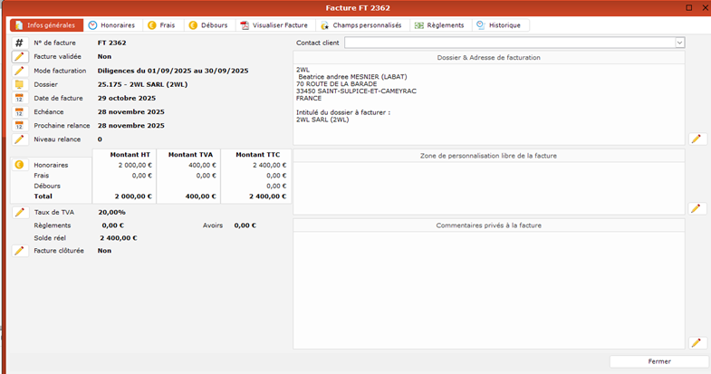 • Cliquez sur « Fabriquer la facture » pour générer le document définitif.