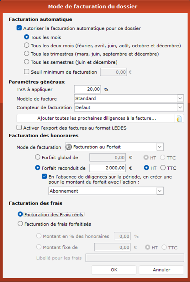 • Mode de facturation : forfait, temps passé ou au résultat.