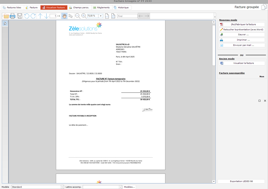 Cliquez sur l’onglet Visualiser facture pour générer la facture groupée.