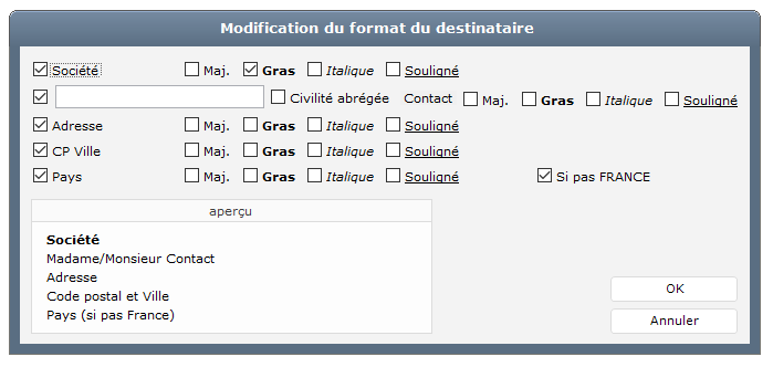 Cette fonctionnalité est accessible depuis le menu Options, puis Format des destinataires.