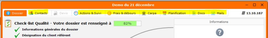 2.2       Onglet « Dossier », tableau de bord et autres fonctionnalités