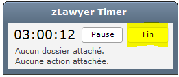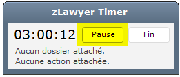Une fenêtre affiche un chronomètre qui décompte le temps. Comme l’affiche le bas de la fenêtre, il n’est rattaché à aucun dossier ni aucune action.