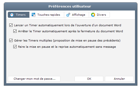 - Lancer un Timer automatiquement lors de l’ouverture d’un document Word. Cette fonctionnalité ne s’applique que si vous ouvrez un document Word depuis l’onglet Docs du dossier.