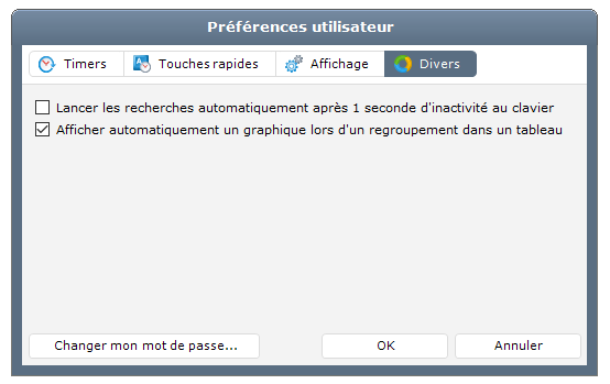- Afficher automatiquement un graphique lors d’un regroupement dans un tableau. Cette option vous permet d’afficher un graphique de type camembert à chaque fois que vous faites un regroupement par colonne. Cela concerne l’état d’activité, l’état de facturation principalement.