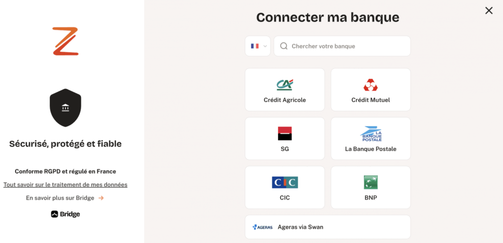 • Sélectionnez votre établissement bancaire parmi la liste proposée.