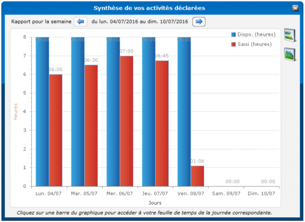 Cliquer sur cette jauge permet d’ouvrir votre feuille de temps à la journée actuelle.